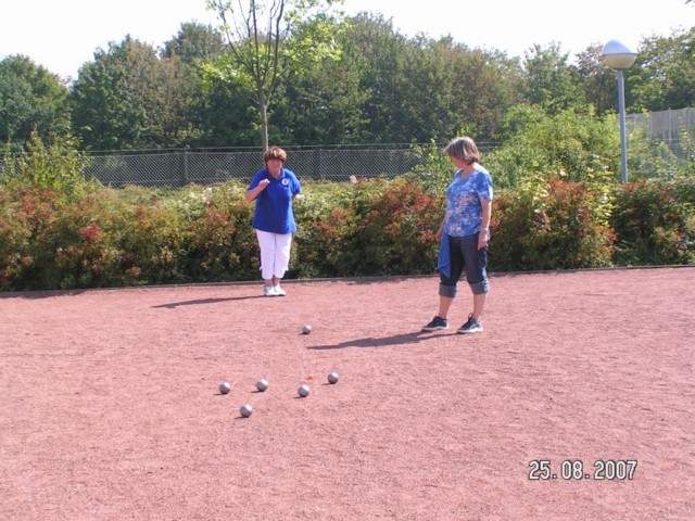 Zum ersten Mal in der Geschichte des 1. Boule-Pétanque-Club Meckenheim ist es einer Frau gelungen, die Vereinsmeisterschaft für sich zu entscheiden. Nach harten Ausscheidungskämpfen unter den 25 Teilnehmern der Meisterschaft am Samstag, traten die besten Acht am Sonntag gegeneinander an. Mit viel Ehrgeiz und noch mehr Schweiß – denn wieder brannte die Sonne vom Himmel – wurde um jeden Punkt und jeden Millimeter gekämpft.