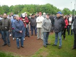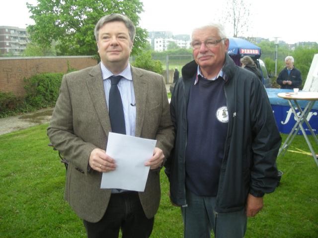 Boule-Spieler zum 19. Vatertagsturnier in Folge nach Meckenheim. Bevor die Spiele begannen, wurden sie von einem Vertreter der Stadt Meckenheim begrüßt. Der Ortsvorsteher von Merl, Reinhard