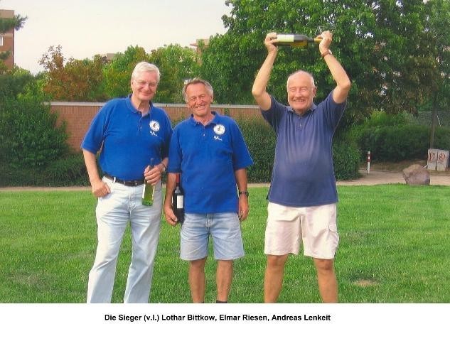 Am vergangenen Samstag fanden sich zahlreiche Mitglieder des 1. Boule-Pétanque-Clubs Meckenheim zum jährlichen – vereinsinternen – „Supermêlée“ auf dem Boulodrom in Merl ein. Hierbei spielen jeweils ausgeloste Zweier-Teams in fünf Runden gegeneinander, der Sieger wird durch ein ausgeklügeltes Punktesystem ermittelt. Das wunderschöne Sonnenwetter veranlasste fast alle Teilnehmer bis zum frühen Abend an den Spielen teilzunehmen. Die Mittagspause stand natürlich im Zeichen gegrillter Steaks und Würstchen und dem Fässchen Bier, das der Vereinsmeister 2009, Albert Graen, gestiftet hatte. Auch wenn jeder Spieler versuchte, möglichst viele Punkte einzuheimsen (und damit Supermêlée-Sieger zu werden), stand doch die Geselligkeit im Vordergrund. Viele berichteten schon von schönen Urlaubstagen, während sich andere noch darauf freuten. Nach der Auswertung stand Elmar Riesen als Sieger fest, gefolgt von Lothar Bittkow und Andreas Lenkeit auf dem 2. und 3. Platz. Für Ihre Leistungen wurden sie mit einem kleinen Geschenk belohnt. Ein schönes Familienfest bei herrlichem Sonnenwetter.