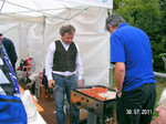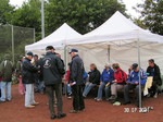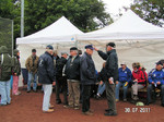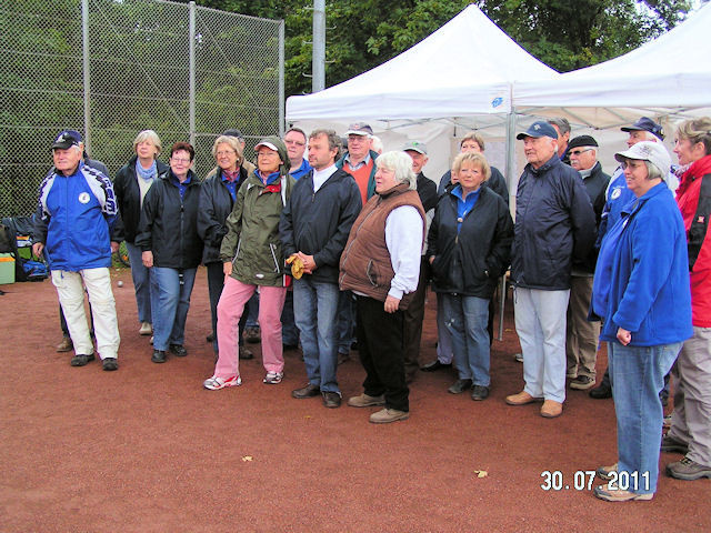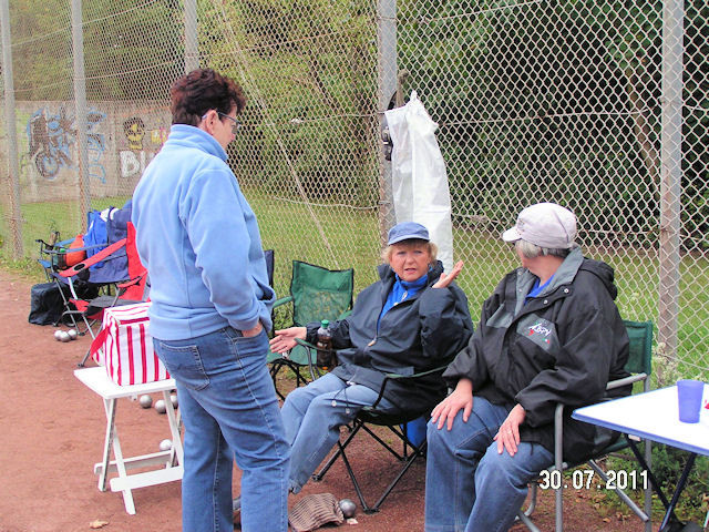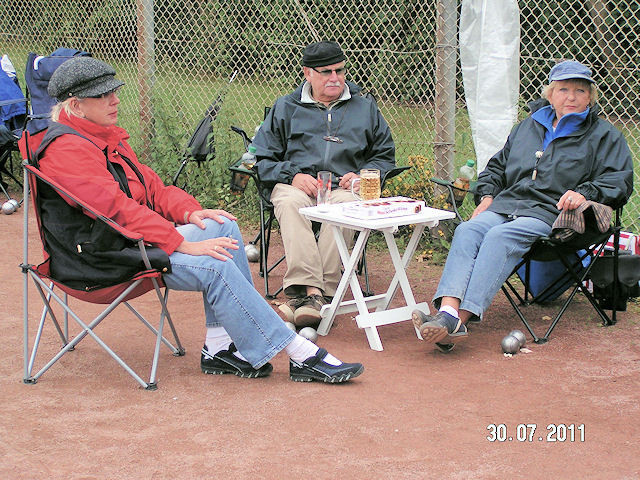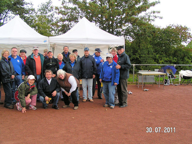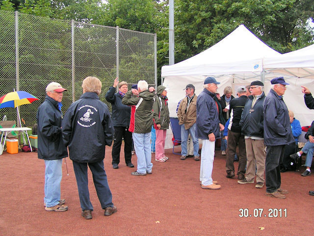 hatte ein Einsehen und pünktlich um 0900 Uhr hörte der Regen auf. Schnell wurden die Zweier-Teams, die jeweils in fünf Runden gegeneinander spielen sollten, ausgelost und die Spiele konnten