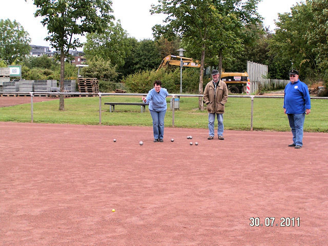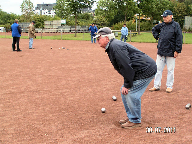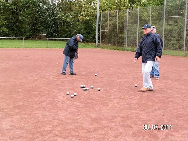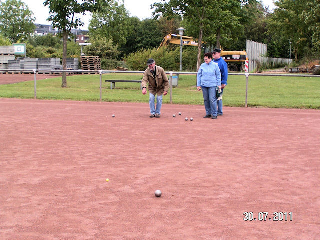 Manch Stoßgebet sandten die „Boulisten“ am Samstag gen Himmel. Es regnet „Bindfäden“ und dabei sollte doch um 9 Uhr das jährliche „Super-Mêlée“ – ein Club-internes Turnier beginnen. Doch der Himmel