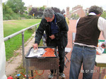 Eingemummt in Fleecejacken und Anoraks trotzten die Spieler der „sibirischen“ Kälte. In der Mittagspause rückte man unter dem Zeltdach dicht aneinander und stärkte sich mit Steaks, Würstchen und Salat. Selbst der sonst so beliebte Rotwein fand kaum Zusprache – auch er war zu kalt. Erst am späten Nachmittag wurde der Sieger nach einem ausgeklügelten Punktesystem ermittelt. Den 1. Preis belegte Dieter Burdak, gefolgt von Elmar Riesen und Richard Wiens. Strahlend nahmen sie ihren Preis in Form einer Flasche französischen Rotweins in Empfang.