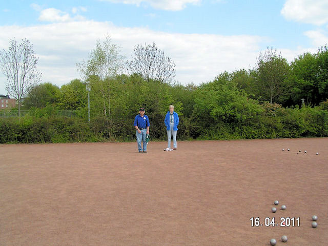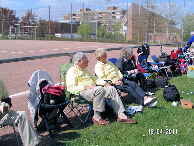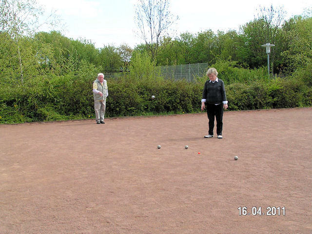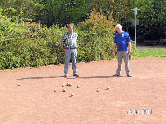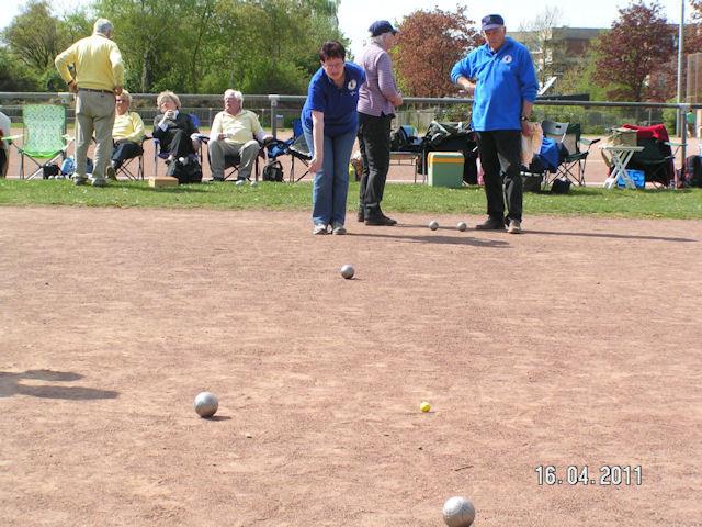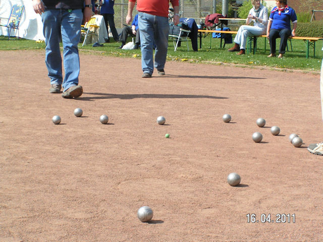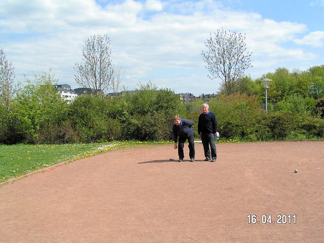 Samstag (16.04.11) mehr als 33 Teilnehmer – darunter auch Gäste aus Bad Breisig – bei strahlendem Sonnenschein und angenehmen Temperaturen auf dem Boule-Platz in Merl, um im so genannten „Supermêlée“