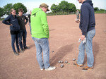 Nach Auslosung der Zweier-Teams flogen auch schon die Stahlkugeln und es wurde hart um jeden Punkt gerungen. Mehr als einmal musste das spezielle Messgerät (Tirette) eingesetzt werden, um auf den Millimeter festzustellen, welchem Team der Punkt zugesprochen werden konnte.