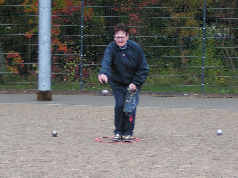 so genannten Schweinchen, begleitet von Jubel (wenn sie sich ganz nahe an das Schweinchen legten) oder von enttäuschtem Stöhnen (wenn die Kugeln ihren eigenen Weg ging). Zäh wurde um jeden Punkt