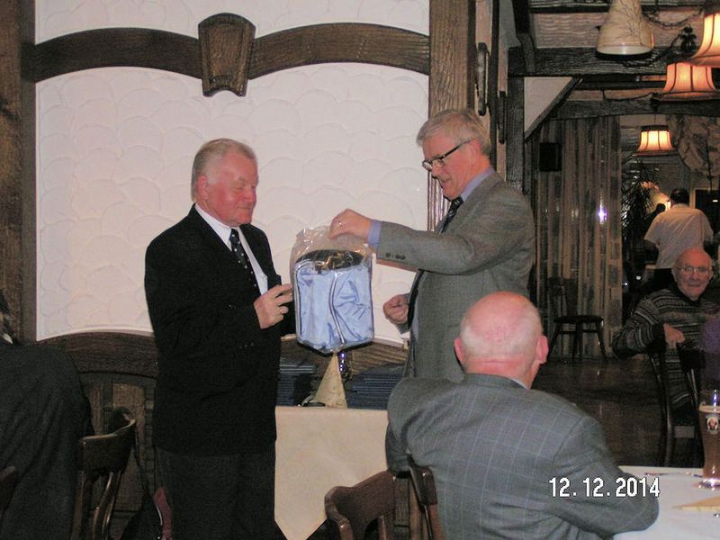 an den Sportwart. Dieser bat nach einer launigen Ansprache die Gewinner der Vereinsmeisterschaft 2014 zu sich.
