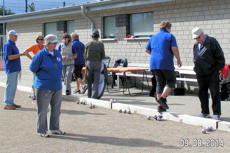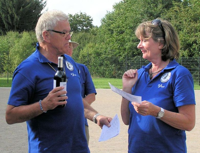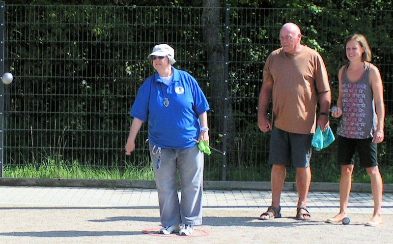 Ausrufe der Freude, wenn der Wurf gelang, oder auch der Enttäuschung, wenn’s danebenging - schallten über das „Boulodrome“ in Merl. Oft ging es um Millimeter, der entschied, wem der Punkt zugesprochen wurde. Doch wichtiger als Zweikampf war – wie immer beim Supermêlée – die Geselligkeit und so stärkten sich die Spieler in der ausgedehnten Mittagspause mit Würstchen vom Grill, diversen Salaten und selbst gebackenen Kuchen.