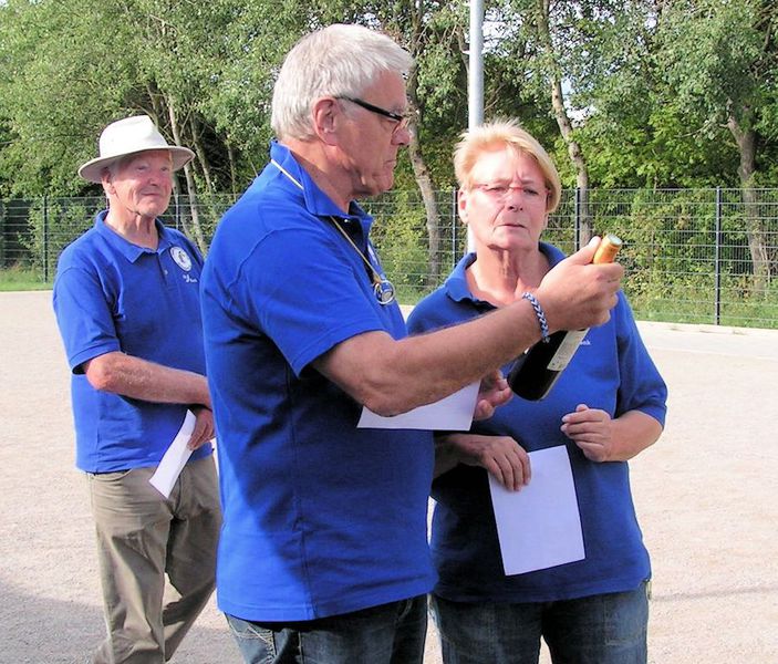 Erst dann stand der Sieger des Supermêlée 2014 endgültig fest: Wolfgang Bludau war der Glückliche, gefolgt von Jutta Hubein und Karin Becker. Die Preise in Form von Rotwein wurde ihnen vom Sportwart des Clubs überreicht.