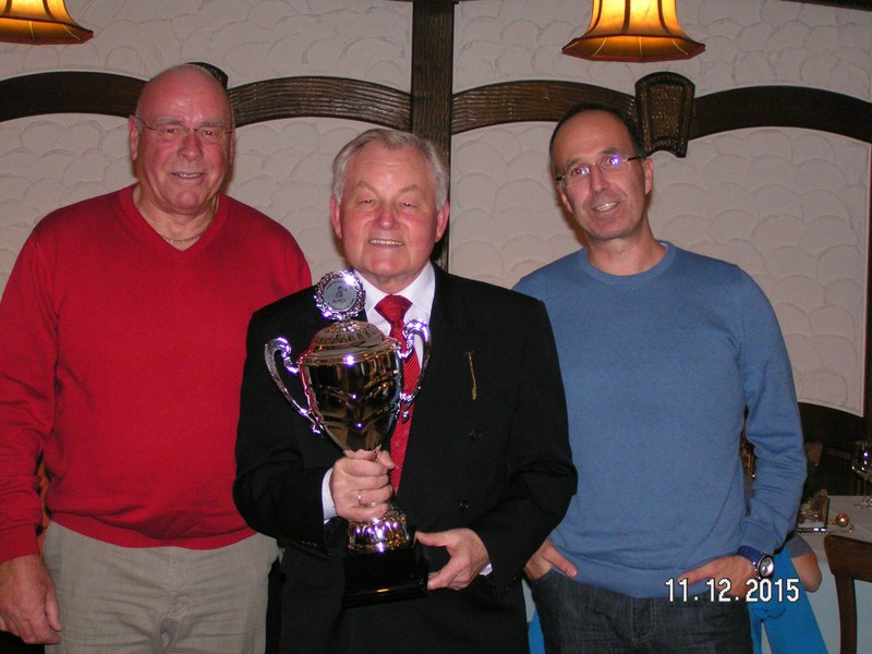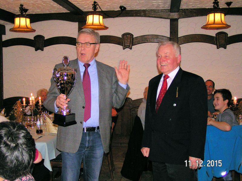 Beifall der Anwesenden einen Dankes-Blumenstrauß. Sportwart Wolfgang Megow rief anschließend den Vereinsmeister des Jahres 2015 zu sich, der (wieder einmal) Dieter Burdak hieß. Er überreichte ihm den