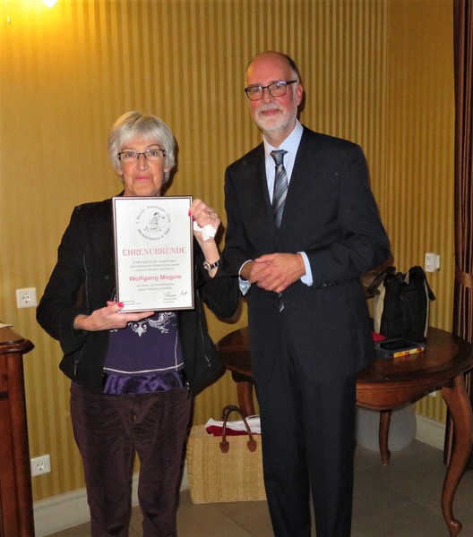 Lothar Bittkow hat 10 Jahre lang als Schriftführer nicht nur den Schriftverkehr des Vereins übernommen sondern auch eine Chronik des Vereins von der Gründung am 15.09.1984 bis heute zusammen gestellt, die er dem Verein übergeben hat und die demnächst auf der Website veröffentlicht wird. Da Lothar nicht anwesend war, wird ihm die Ehrenurkunde nachträglich übergeben.
