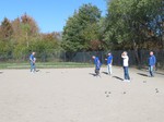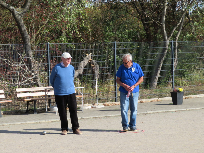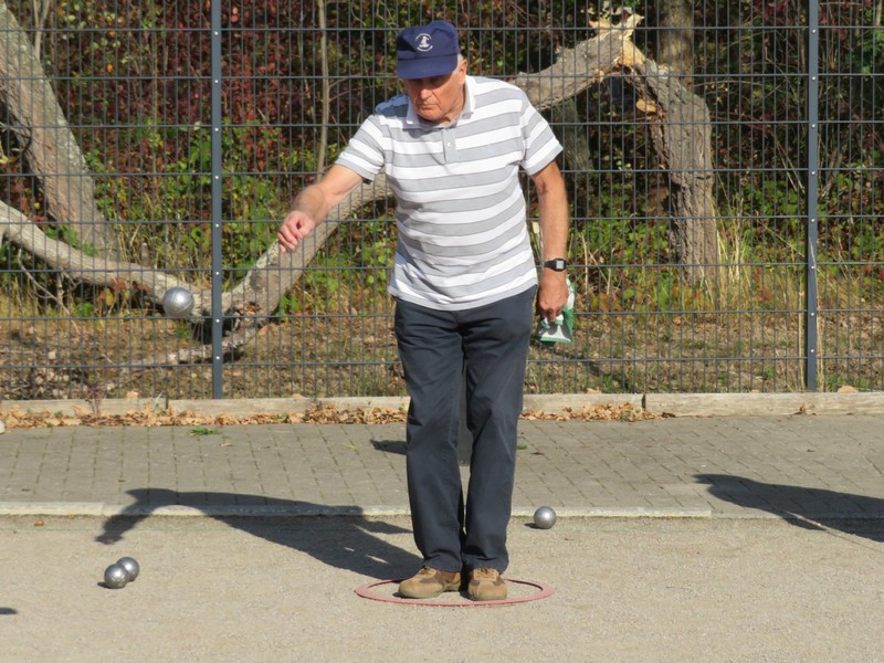 war „Tête-à-tête“, d.h. jeder gegen jeden. Und so flogen die Stahlkugeln zum so genannten Schweinchen, begleitet von Jubel (wenn sie sich ganz nahe an die Zielkugel, das „Schweinchen“ legten) oder