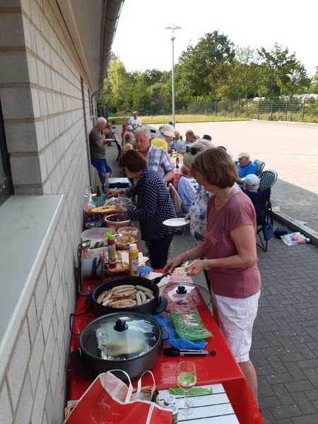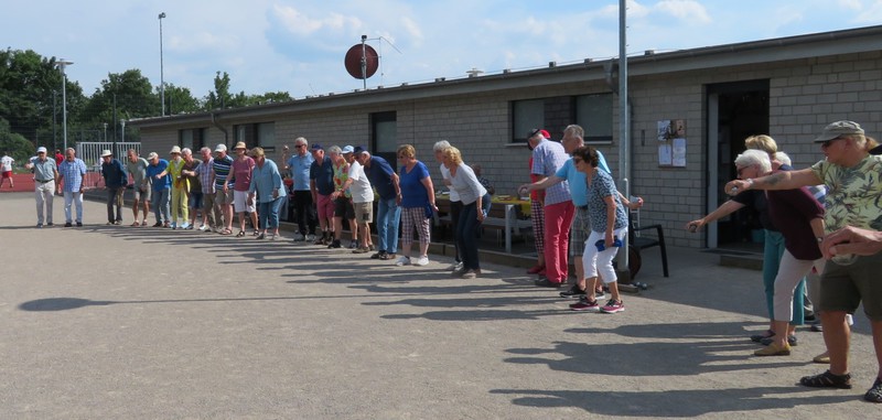 35 Spieler/innen feierten am 22. Juni bei sehr gutem Wetter das Mittsommer-Boulefest. Ab 17 Uhr wurde in den lauen Abend hinein gefeiert. Neben dem Boulespielen standen ausgiebige Gespräche untereinander im Mittelpunkt. UND... ein leckeres Buffet. Hier einige Impressionen.