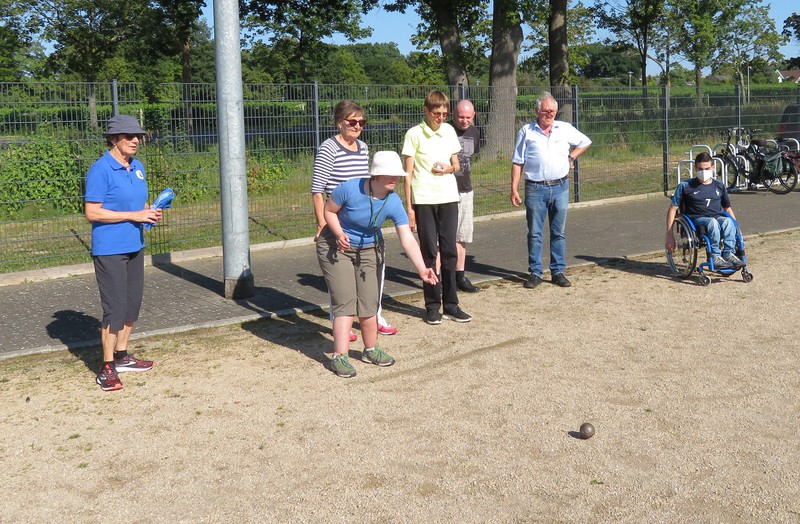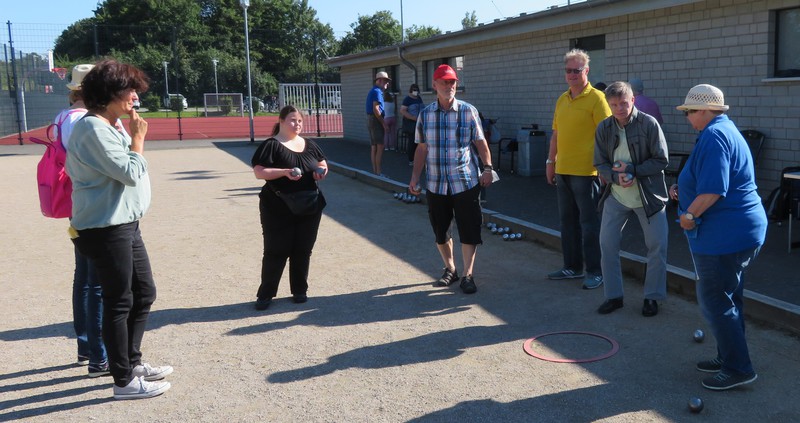 Wieder trafen sich, wie seit 2015, am 3. September 2021, 26 behinderte Jugendliche und Erwachsene mit ihren Betreuerinnen und Betreuer detr inklusiven Freitagsgruppe der „Arche“ der Evangelischen Kirchengemeinde Meckenheim-Merl, auf dem Bouleplatz der Alfred-Engel-Sportanlage.