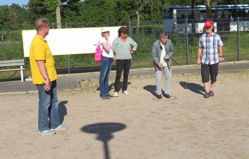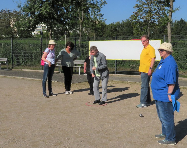 Auch zahlreiche Mitglieder des 1. Boule- und Pétanque-Club Meckenheim waren vor Ort und halfen mit Tipps und Tricks die Kugeln so nah wie möglich an die Zielkugel (Schweinchen) zu bringen. In gemischten Teams wurde bei herrlichem warmem Spätsommerwetter ein lebhafter und fröhlicher Nachmittag verbracht und alle freuten sich über ihre Erfolge beim Werfen der Boule-Kugeln.