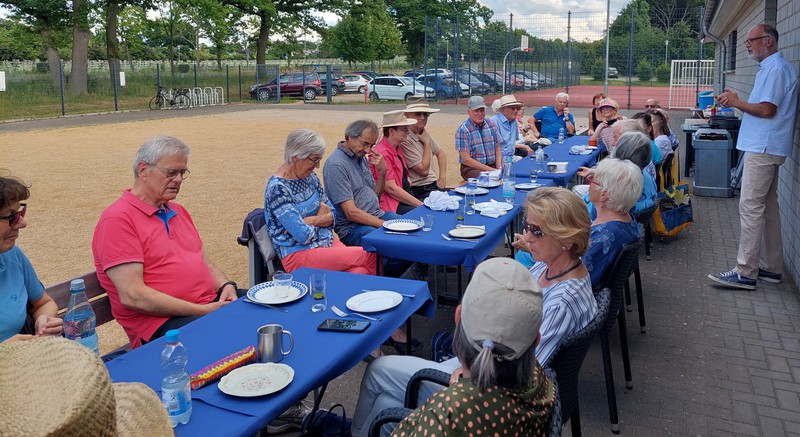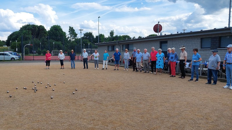 Bei warmem Sommerwetter fanden sich am 25. Juni 31 Mitglieder und Gäste um 17 Uhr zu unserem Mittsommer-Boulefest ein. Nach einer ersten Spielrunde stärkten sich alle an den Bratwürstchen und den zahlreichen mitgebrachten herzhaften Leckereien. Der Abend fand seine Fortsetzung bei lockeren Gesprächen in harmonischer, fröhlicher Stimmung und auch noch dem einen oder anderen Spielchen und endete so gegen 22 Uhr.