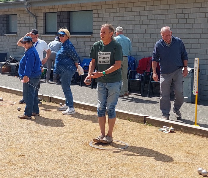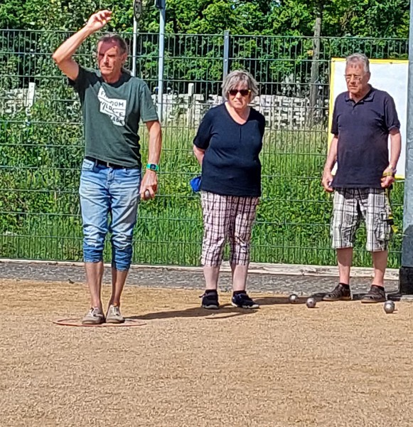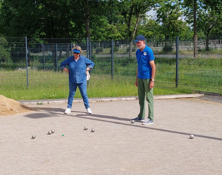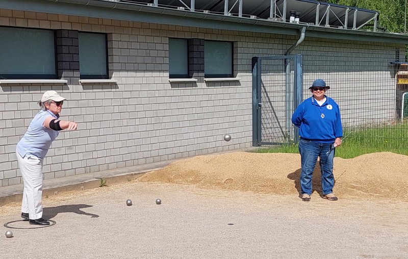 Bei bestem Boulewetter, sonnig mit schattenspendender leichter Bewölkung und angenehmen Temperaturen, wurden 4 Runden in der Formation Doublette formée, wobei zwei Spieler*innen für den Spieltag ein festes Team bilden, gespielt. Jede Spielrunde dauerte gut 1,5 Stunden, da sehr konzentriert und überlegt gespielt wurde.