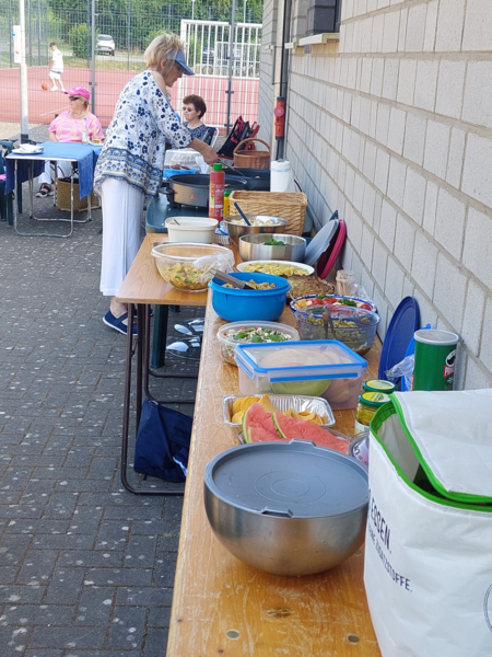 Am Samstag, dem 24. Juni fanden sich bei hochsommerlichem Wetter insgesamt 40 Mitglieder und Gäste auf dem Platz ein. Nach einer ersten zwanglosen Spielrunde wurde dem umfangreichen Büfett zugesprochen. Allen, die dazu beigetragen haben, sei herzlich gedankt! Bei anregenden Gesprächen und weiteren Spielchen fand ein gelungener Abend gegen 21.30 Uhr seinen Abschluss.