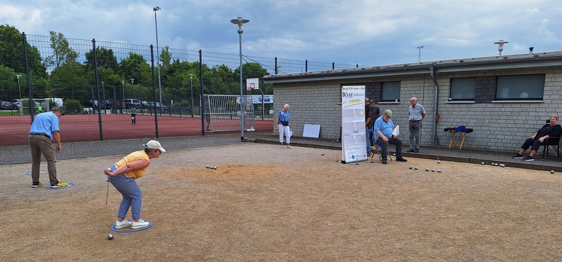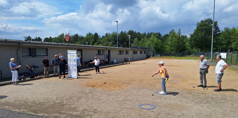 Zur Prüfung zum Boule-Sportabzeichen durch die Prüfer Gabi Müller und Werner Prix aus Euskirchen fanden sich am Sonntag, dem 30. Juni, 10 Mitglieder auf unserem Platz ein.
