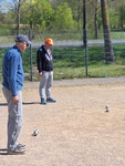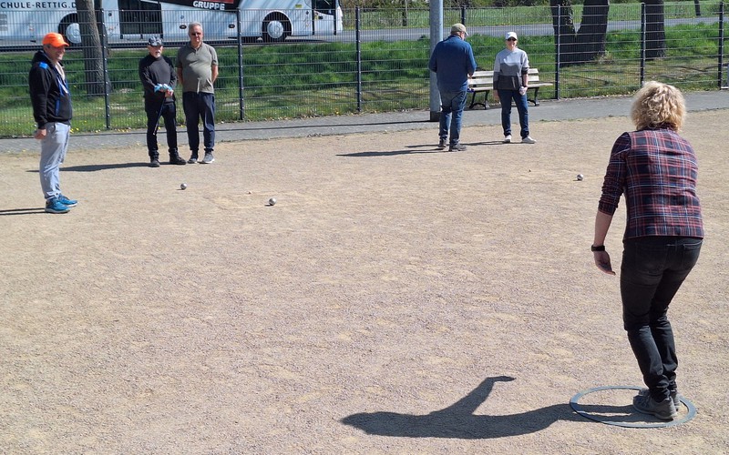Aus Essen war der professionelle Boule- und ehemalige Bundestrainer Daniel Dias angereist, der mit seiner ruhigen kompetenten Art anschaulich die grundsätzlichen Bewegungsabläufe und Techniken zum richtigen Legen und erfolgversprechenden Schießen erläuterte und vorführte. Besonderes Augenmerk legte er auf den korrekt zum Ziel ausgerichteten Stand und die Handbewegungen beim Loslassen der Kugel.
