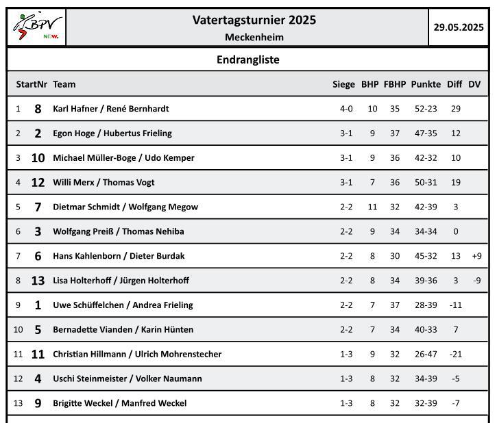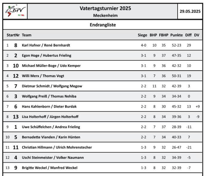 Unser traditionelles Vatertagsturnier fand an Himmelfahrt, Donnerstag, dem 29. Mai statt.