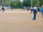 Wegen des letzten Regenschauers am Morgen begannen wir erst gegen 11 Uhr mit der ersten von 5 Spielrunden. Bei dann aber sonnigem und trockenem Wetter wurde in den weiteren Spielrunden intensiv um